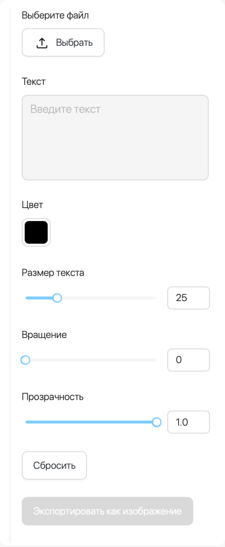 После регистрации креатива можно сразу в ЛК нанести метку о рекламе или другой необходимый текст: выбираем изображение, вводим текст и указываем его параметры, далее нажимаем кнопку «Экспортировать как изображение», и файл загрузится на устройство.