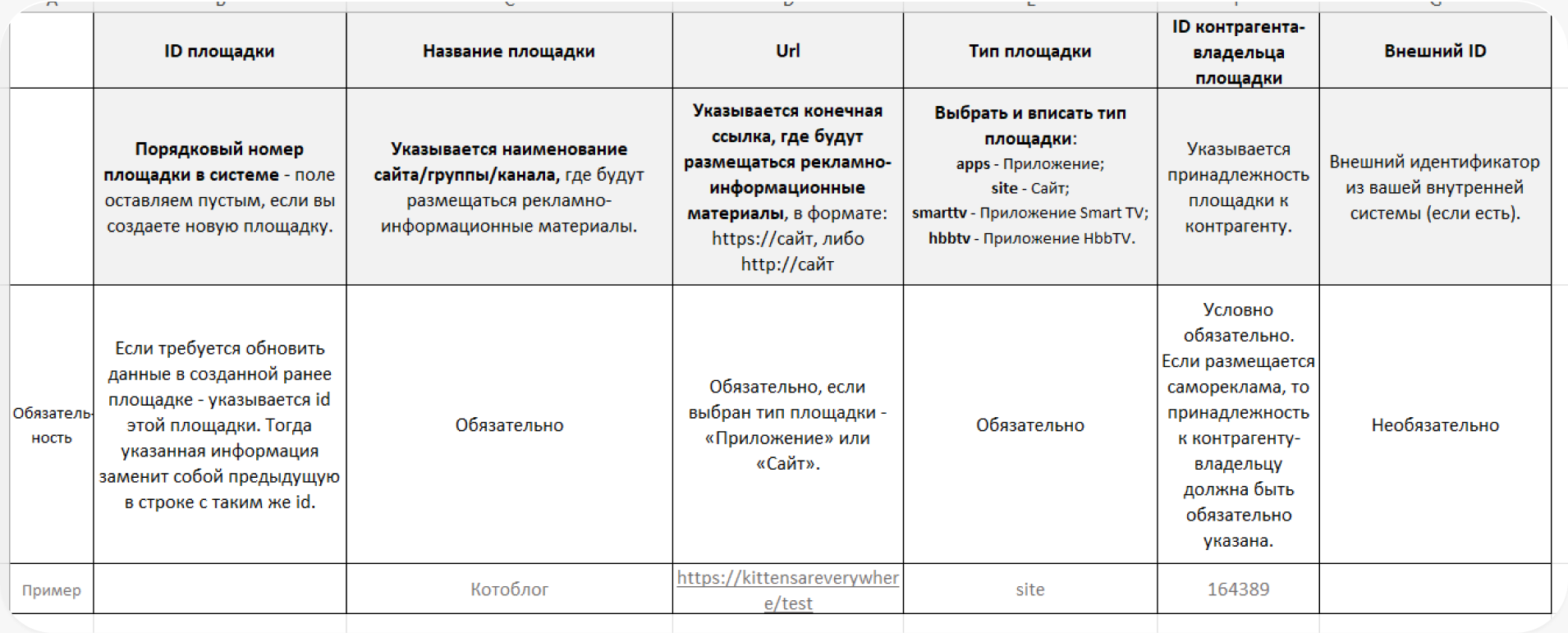 Для массовой загрузки данных выбираем «Загрузить шаблон для импорта» – на ваше устройство скачается файл «platforms_import». Заполняем этот файл по шаблону: