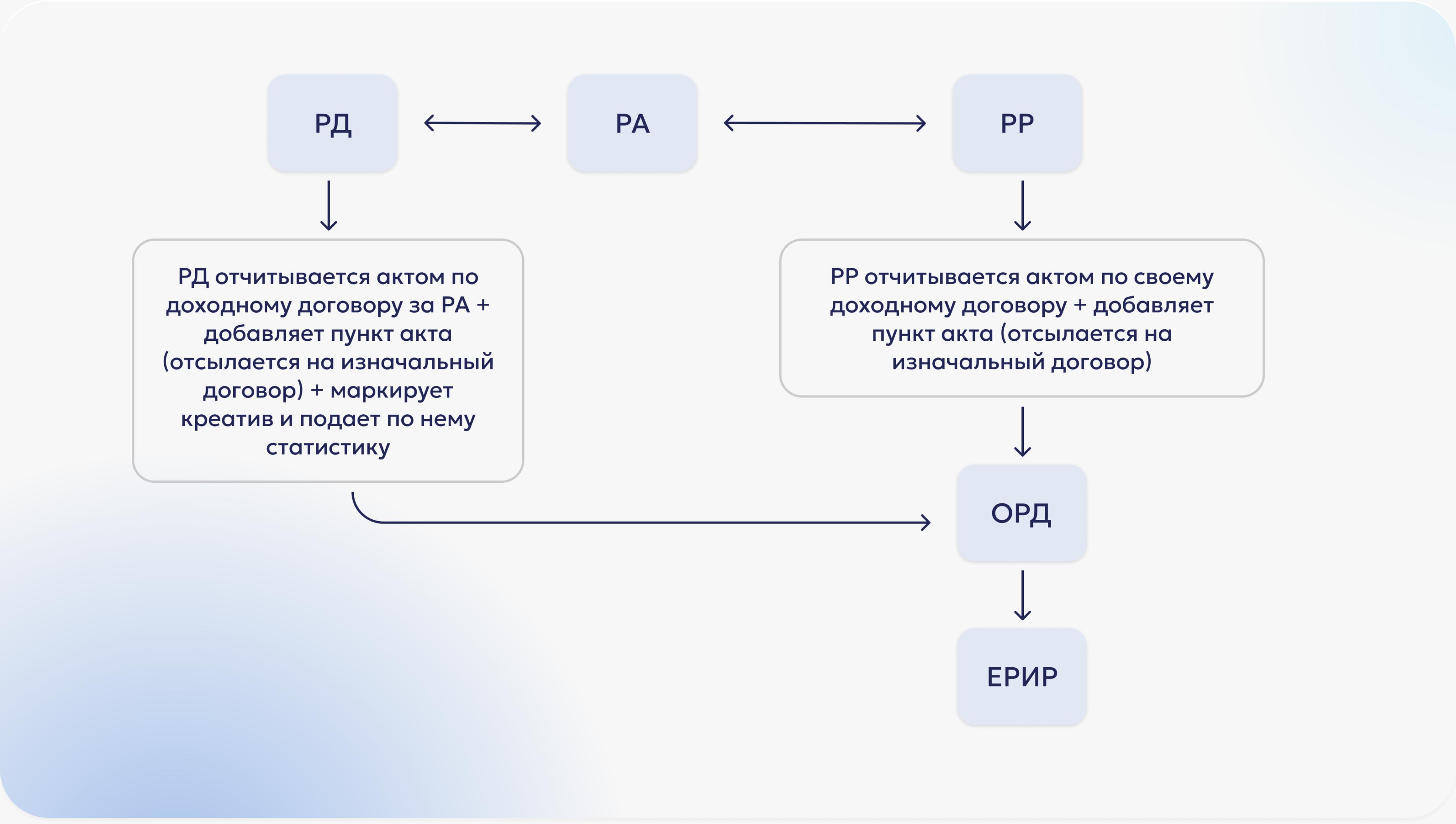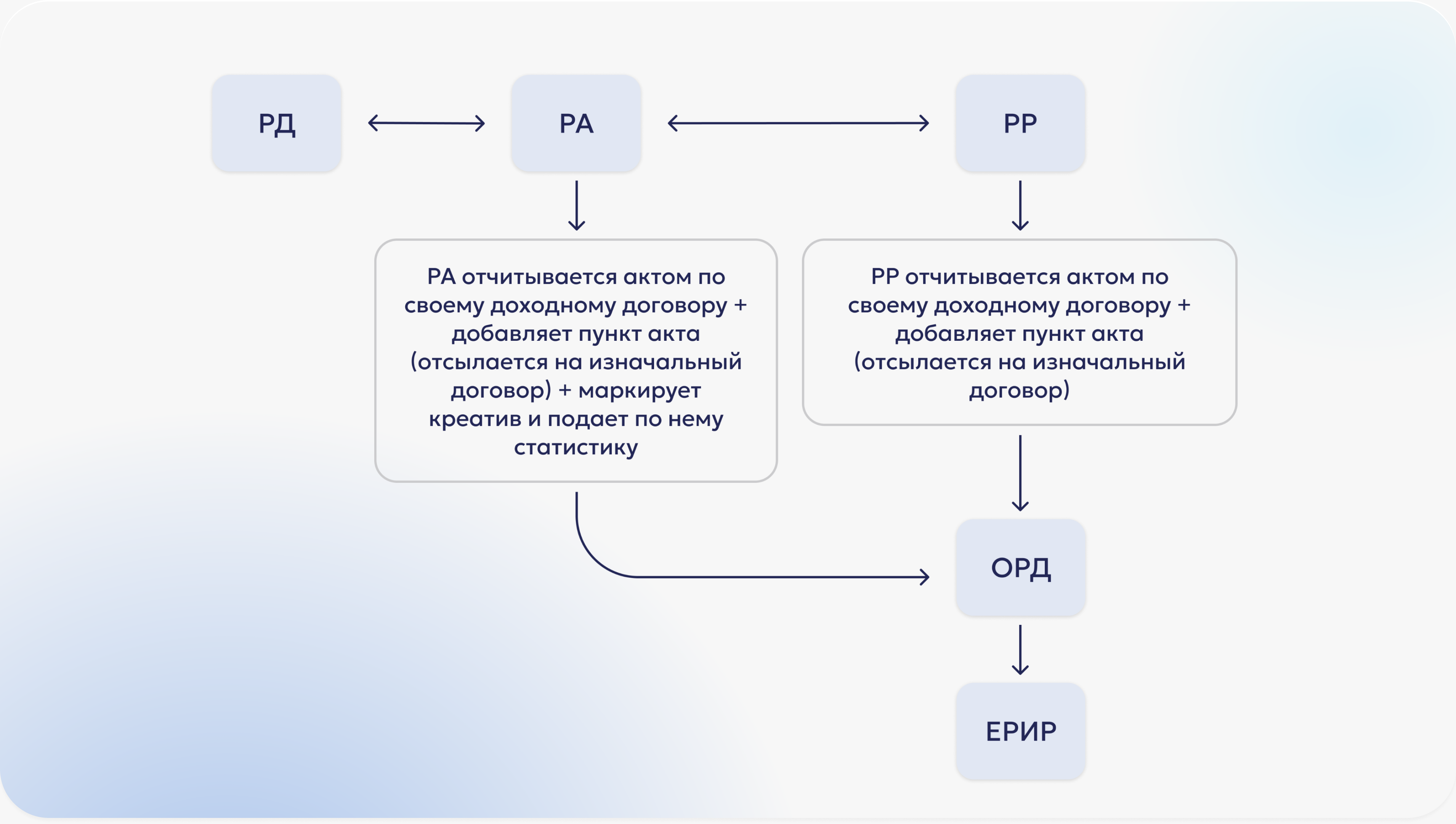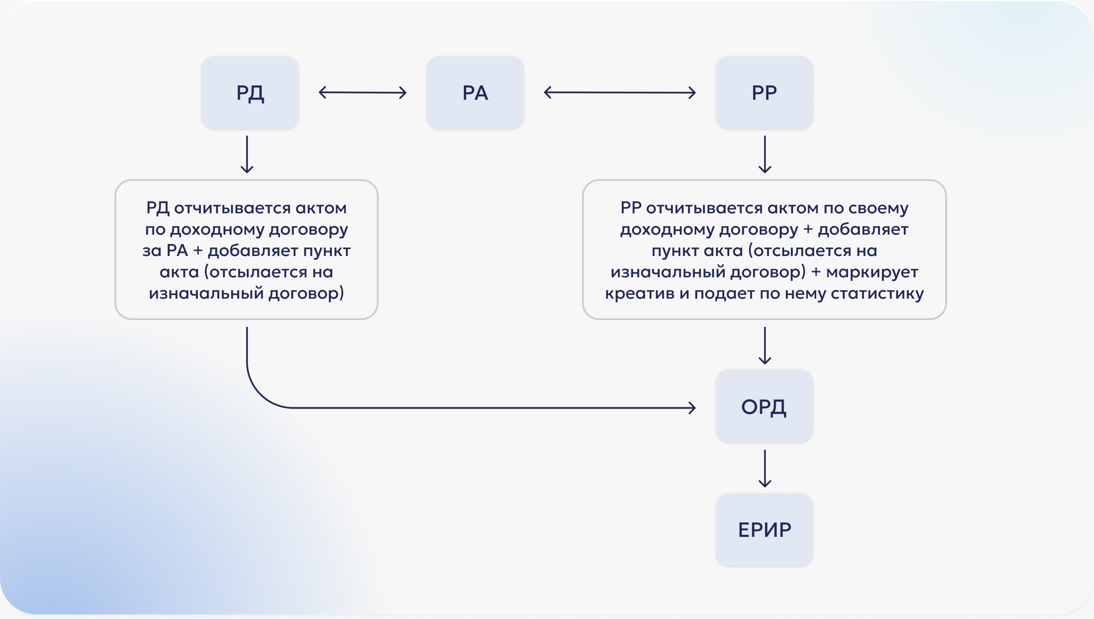 С 1 сентября 2022 года введена обязательная маркировка рекламы. Теперь перед размещением вся реклама в интернете должна быть промаркирована согласно нововведениям в Федеральном законе «О рекламе». Для этого были введены специальные участники – Единый реестр интернет-рекламы (ЕРИР) и операторы рекламных данных (ОРД), например, мы – «ОРД-А». Мы помогаем упростить маркировку и передачу данных в ЕРИР, агрегируя информацию от участников рынка и присваивая идентификаторы рекламным материалам. Напрямую направить сведения о рекламных кампаниях в реестр нельзя.